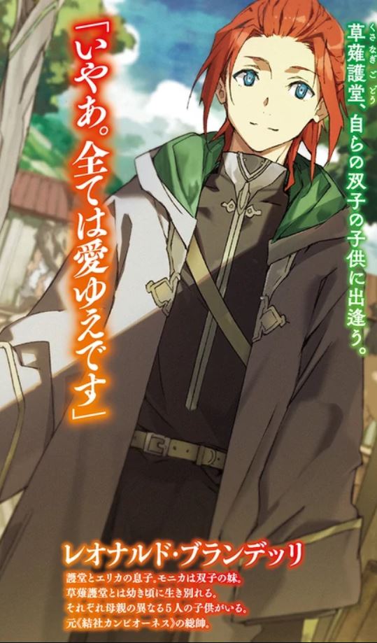 Leonard Blandelli is one of the characters of Campione Lord of Realms, and is the son of Godou Kusanagi and Erica Blandelli. Therefore, he, alongside his twin sister Monica, are also the first children of the former.