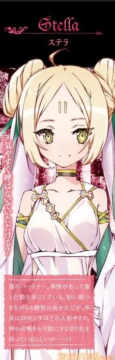 Stella is the Goddess Aphrodite of Greek mythology. She is one of the main characters in Shiniki No Campione and is in a symbiotic bond with Rokuhara Ren.