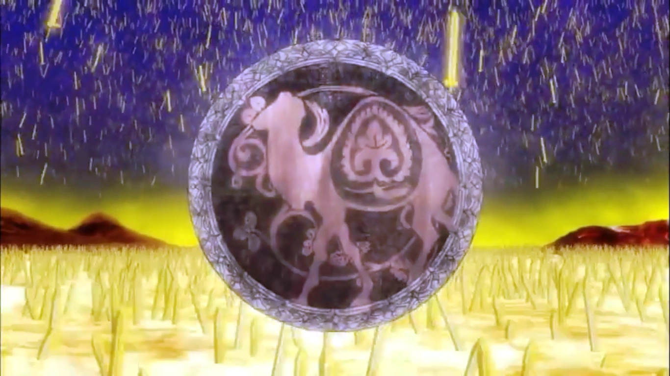 This incarnation grants him the power to control thunder. The reason for this is that since ancient times, the goat and other horned animals were considered to be sacred beasts that symbolized great magical power, as horns have been the symbol of special magical power since ancient times. Kings and priests often wore hats or helmets with horns to show that the wearer possessed power. Nomadic Indo-European tribes were also thought to have made analogies comparing the goat to lightning. The Greek god of the heavens Zeus was also intimately linked to the Goat, and the connection between him and Verethragna is further strengthened when considering that Verethragna was often equated to Heracles, the son of Zeus. He also shares close ties to the thunder god Indra. When activated He transforms into a goat with the ability to release lightning from its horns. In his human form, Verethragna can release a powerful thunder from his hand. It's also possible to create a lightning storm that releases a thousand raging thunderbolts that are even more powerful than the boosted lightning of salvation.